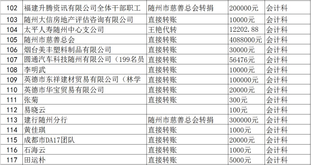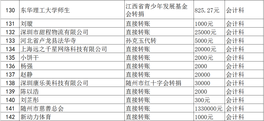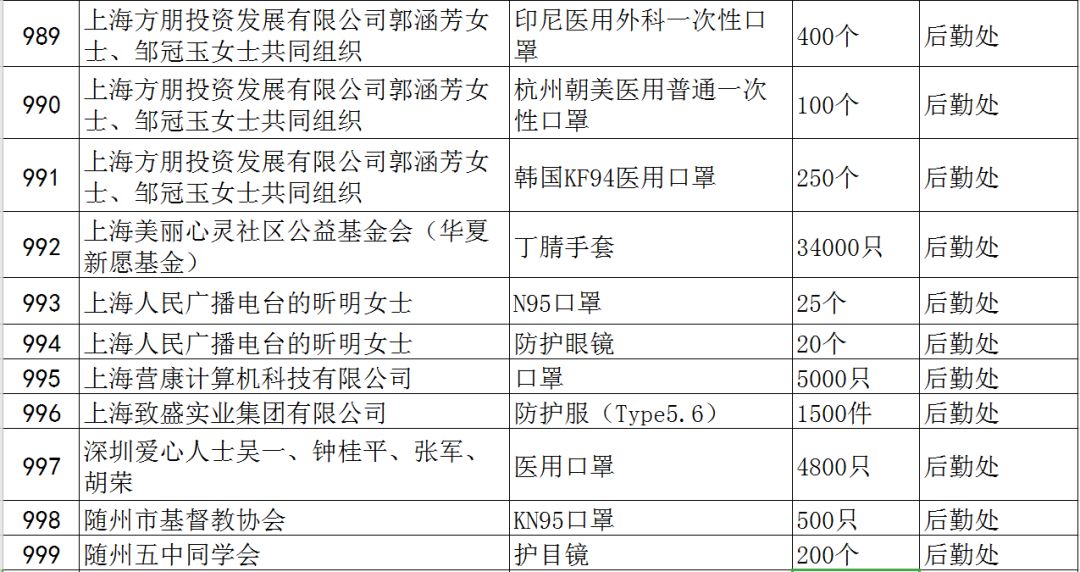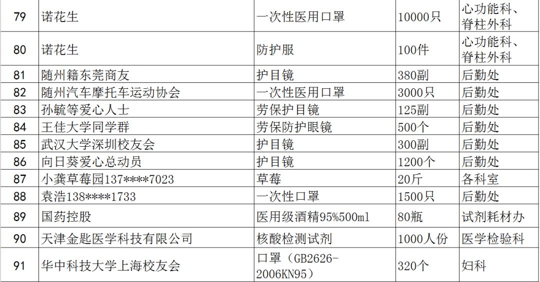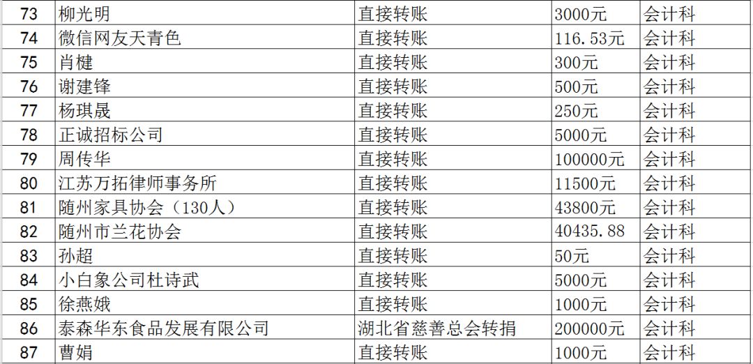 一、本公示包含2月14日所发布公示(一)中的捐赠信息,且排序不分先后。