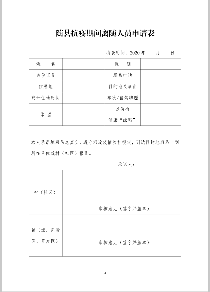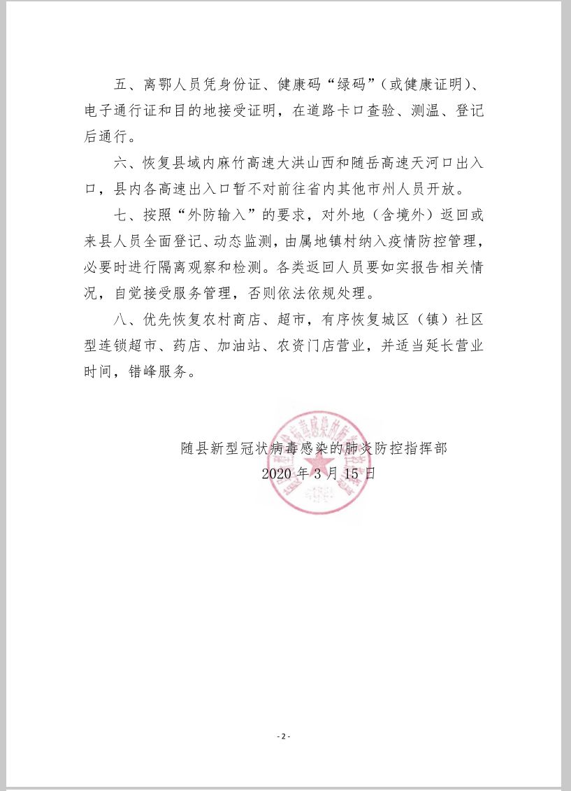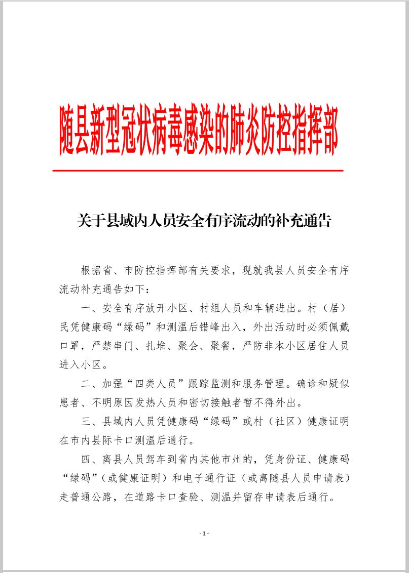 随县:关于县域内人员安全有序流动的补充通告