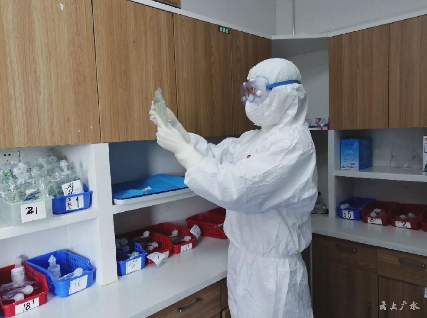 感染隔离病区的工作是特殊的,工作时必须穿防护服,佩戴口罩和防护面屏,这就给工作带来了一定的难度,视线不好,走路笨拙,做事慢半拍,连平日最基本的打针,也不像以前那样麻利,往往打完一个针都是一头汗。在这样的工作环境下,她已经坚持了37天。