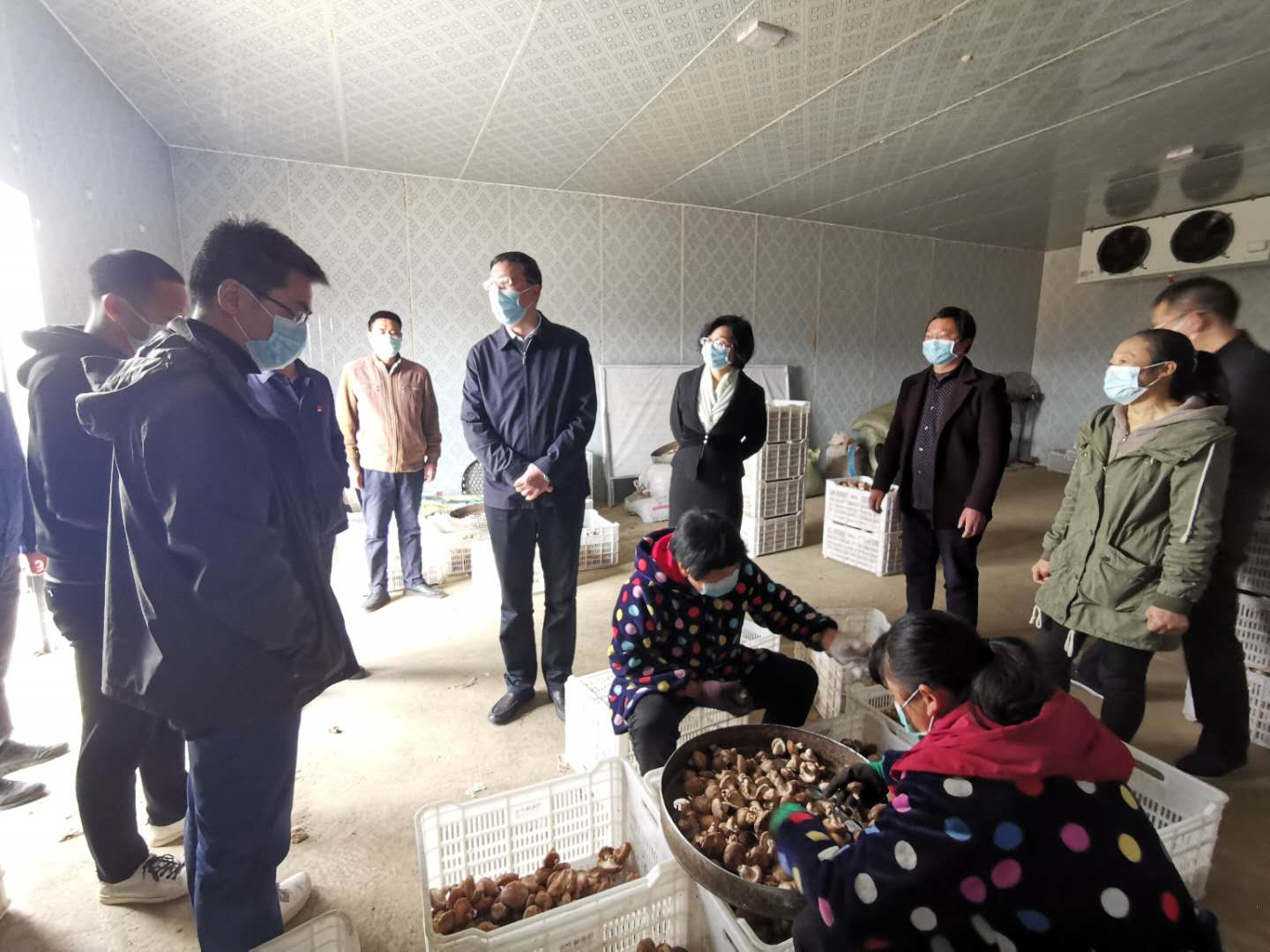 梅子沟村脱贫产业包括香菇种植、光伏电站、高山茶和软籽石榴四大块。在梅子沟村香菇种植合作社的生产基地,陈兴旺一行察看了集中制棒各个生产环节、询问了鲜菇生产和销售情况。自复工复产以来,该合作社集中制棒车间抢抓农时,开足马力生产,每天能产16000袋香菇袋料,力争在清明节以前完成30万袋袋料的生产、灭菌和点种工作,降低疫情影响。合作社还积极谋划牵头成立香菇种植合作社联社,抱团走鲜菇出口的路子。