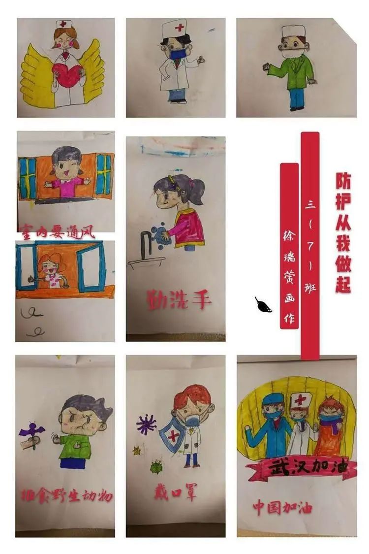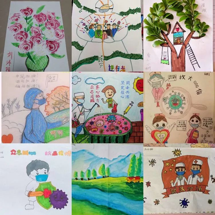 美术组 同学们变成小画家,用画笔描绘“逆行者”。