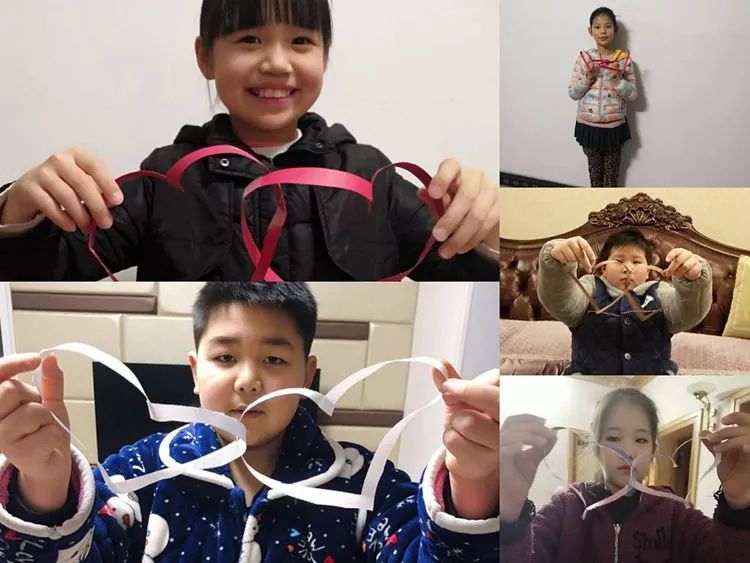 五年级的同学们利用莫比乌斯环原理,制作了串在一起的两个爱心,献给辛苦的妈妈爸爸,以及我们身边的“逆行”英雄!