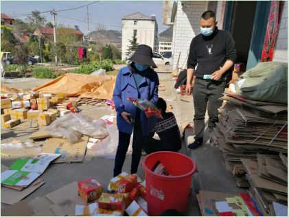 在三里岗居委会元宝街口,退役军人吕国松的香菇网店也热火朝天地开张了。吕国松的网店已经经营了三年多,刚开始他跟着姐姐打工,后来摸着门道后就自己经营,特别是年关时节生意最好,月平均2300件,每月10000元的收入。开年后因为疫情阻隔,好多邮件没能发出去,现在恢复交通后订单猛增,包装盒不够用,吕国松一家子正在一边自制包装盒一边分拣发货。