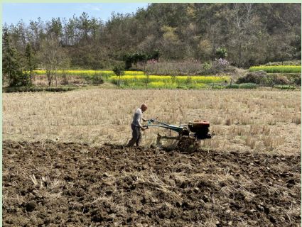 “国家这么好的农业政策,不能让田抛荒。”老杨是种田好把式,虽然年岁大了但身体好闲不住,儿子媳妇在外打工,他也不愁吃不愁喝,就索性承包了6亩水田。老杨早已在供销社将种子化肥订购到位,他要趁着季节翻耕平整,为播撒谷种打基础。