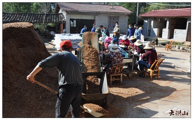 拌料、装袋、锁口、检查破损、上堆……3月18日,在大洪山风景名胜区熊氏祠村九组一户袋料香菇生产加工现场,20余名村民们正在装袋机器旁分工合作,有条不紊地进行着“流水作业”。