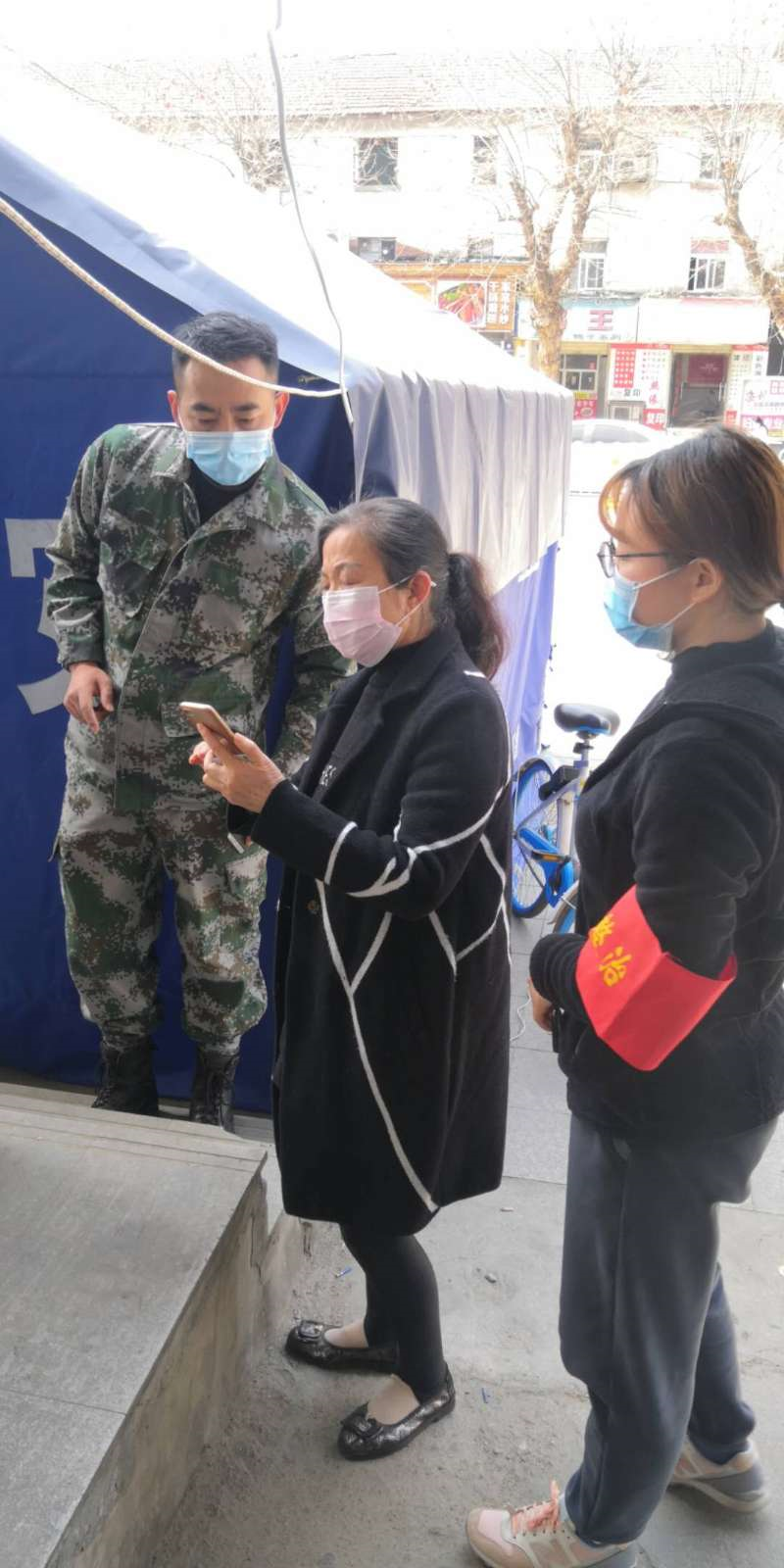 市水利和湖泊局干部谢闯、市委党校干部陈雅君指导居民扫健康码
