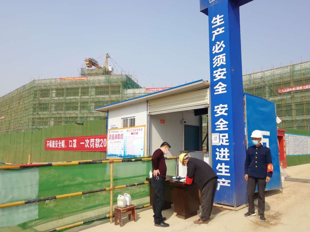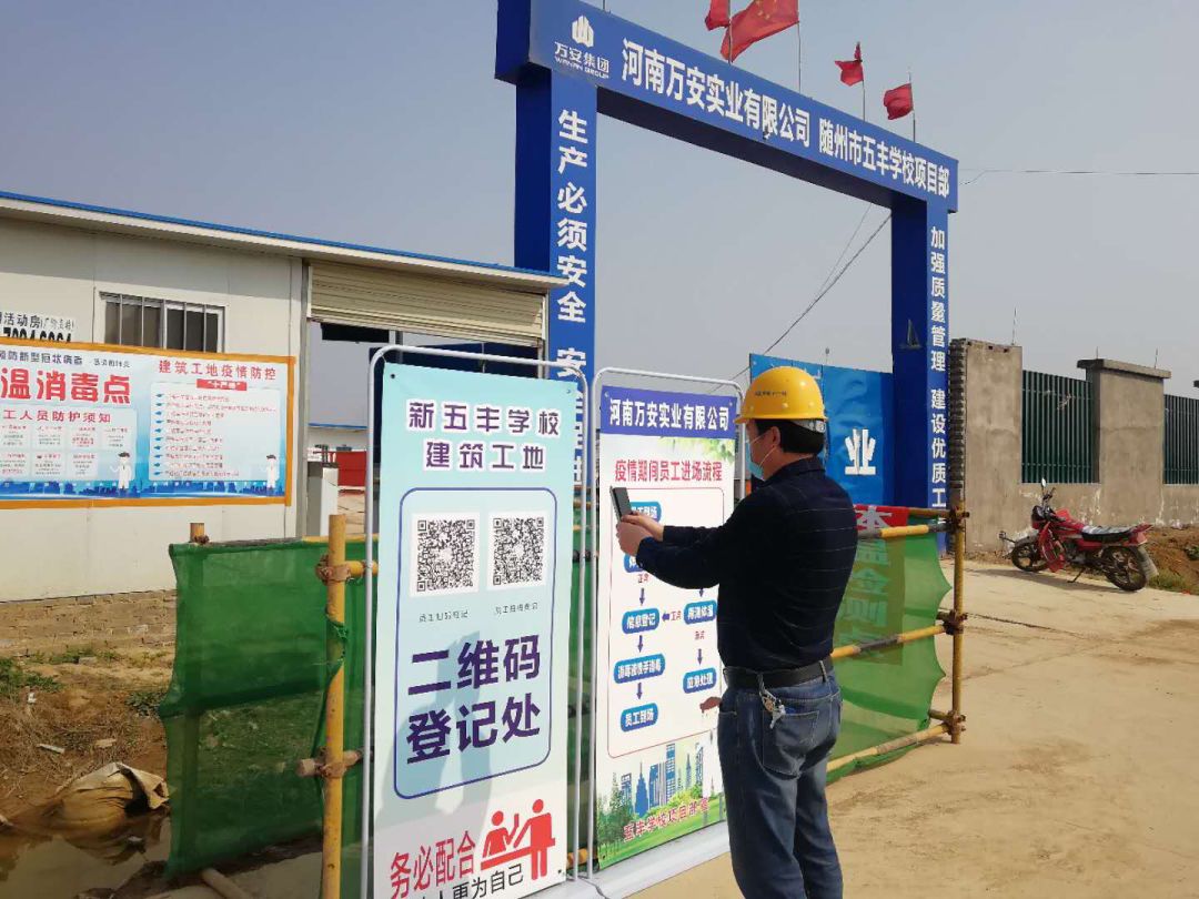 “请打开支付宝扫健康码,配合检测体温、消毒以后再进入工地。”3月20日,新五丰学校建设项目门前的防疫人员对入场者逐一进行检查。