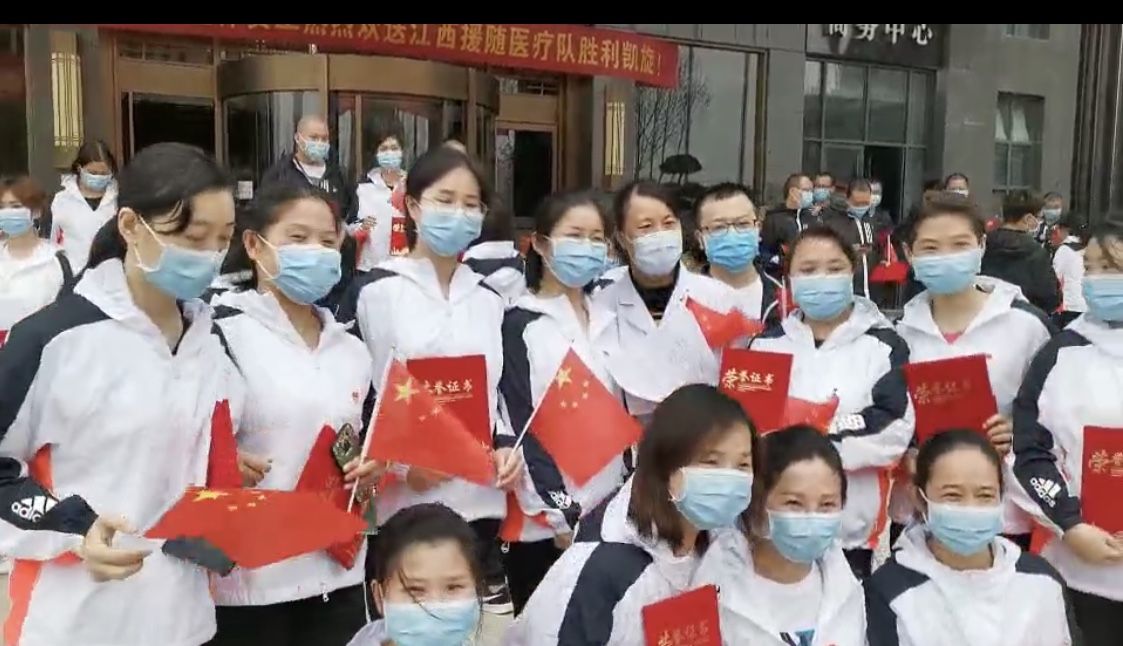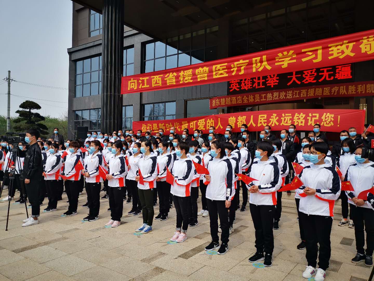 欢送仪式上,曾都区区委书记张健为江西省支援曾都医疗队送上锦旗,曾都区区委副书记、区长姜皓在表达感谢时数次哽咽,他说“我们永远感恩你们为曾都拼过命,在这场没有硝烟的战斗中,你们舍生忘死、挺身而出,为曾都区疫情防控工作做出重大贡献,立下汗马功劳,曾都人民将永远铭记于心!”是的