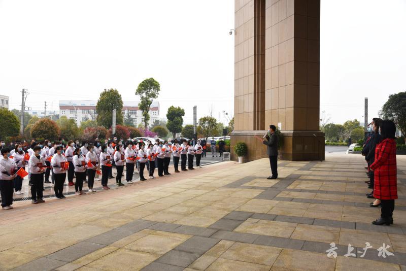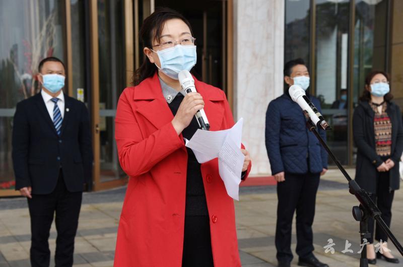 广水市副市长王桂兰致辞,江西援随医疗队副队长、赣南医学院第一附属医院副院长陈懿建讲话。