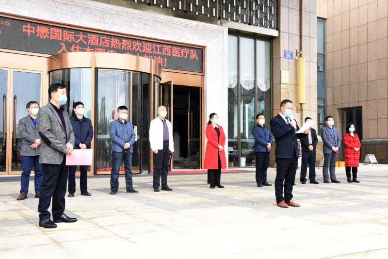 颁发证书活动结束后,江西援随医疗队广水分队向广水一医院赠送了题有“赣鄂同心、共同抗疫”字样的感谢信。