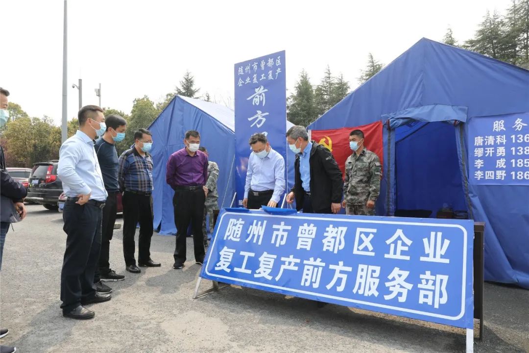 在何店镇高速路口,张健看望慰问企业复工复产前方服务部工作人员,在察看工作台账后,张健强调,前方服务部是曾都区服务企业重要窗口,要继续发挥服务作用,不断研究总结,进一步改进工作方式方法。要因时因势,想尽一切办法,全方位发挥作用,根据企业实际需求搞好服务。当前正处于奋力夺取疫情防控和经济社会发展双胜利的重要节点,要进一步发扬好的工作作风,抓好统筹协调,搞好前后方对接,推进企业满工满产。