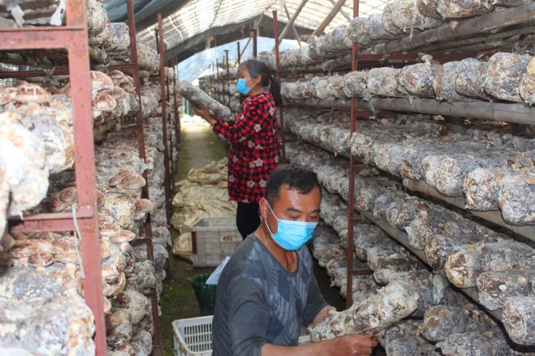 放眼四望,处处都是菇农忙碌的身影。有的采摘香菇,有的分拣装框,有的管理菌棒。今年采摘季比往年最大的不同是菇农们个个都戴着口罩,彼此间隔距离在2米以上,并且没有扎堆聚集的现象。“这段时间天气晴好,适合袋料香菇出菇。防疫不松劲,生产加把劲。菇农们正抢抓时机,加紧采摘香菇,努力把疫情损失降到最低。”正在地头负责协调处理香菇生产难题的九口堰村党支部书记代道银说道。