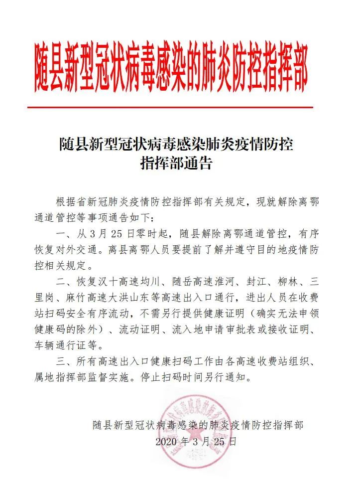随县新型冠状病毒感染肺炎疫情防控指挥部通告