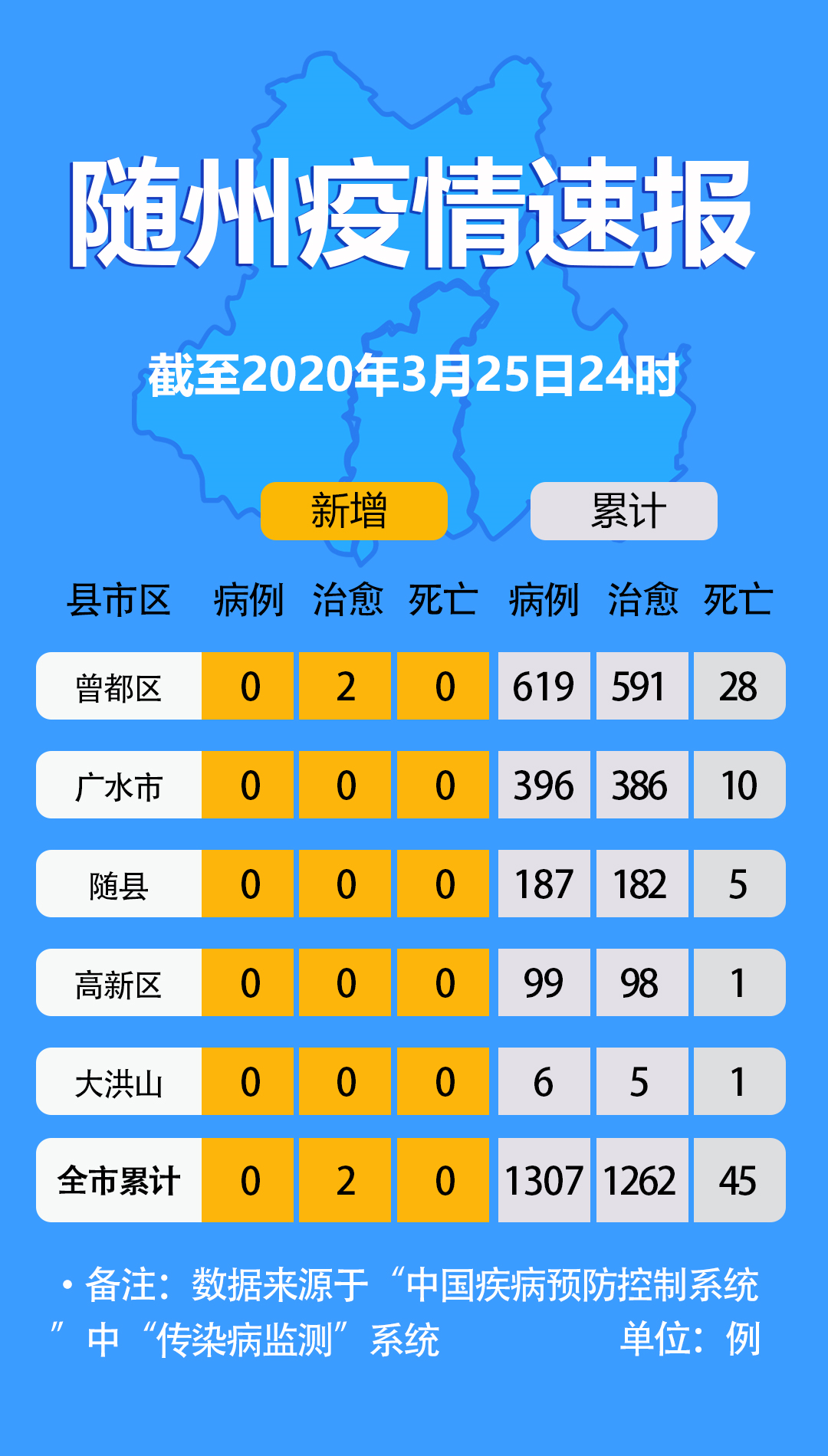 速报!3月25日随州新增0例,累计病例1307例,累计死亡45例