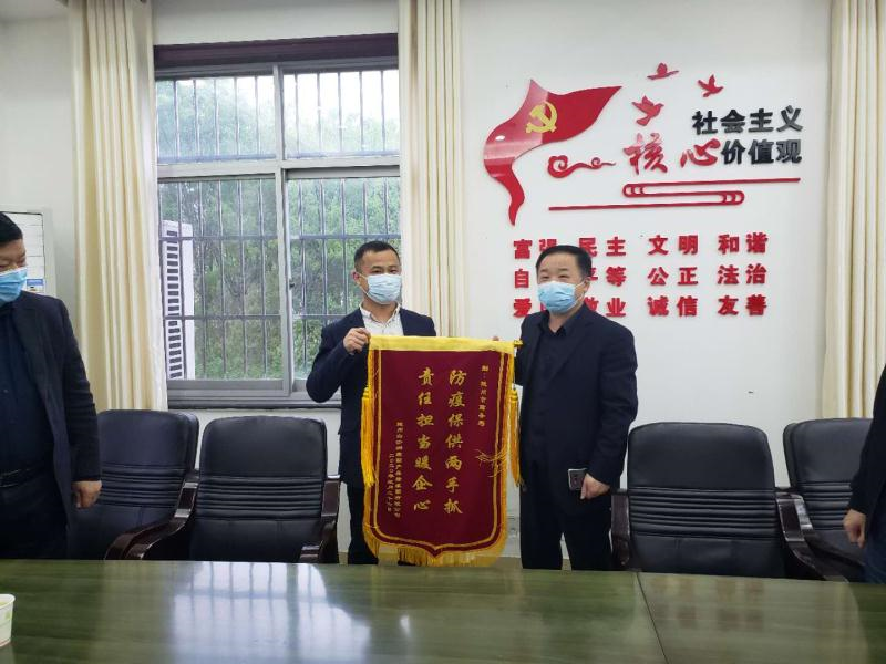 3月26日,随州市白沙洲农产品物流园有限公司总经理胡锋亮向随州市商务局送来一面写有“防疫保供两手抓,责任担当暖企心”的锦旗,对疫情期间市商务局履职责、敢担当、优服务表示真诚感谢。