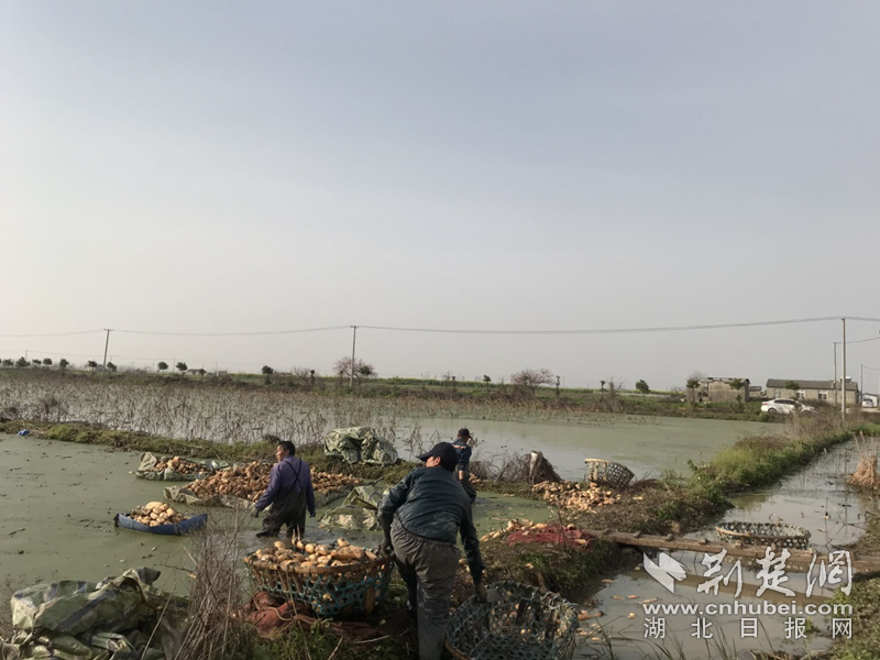 △莲藕采挖现场图,湖北是莲藕的主产地