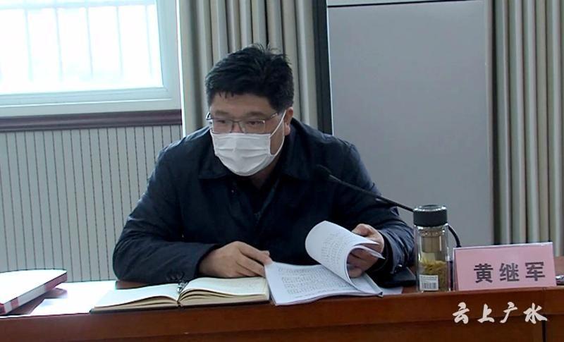 3月30日,广水市委书记黄继军主持召开市委常委会。会议传达学习党委(党组)落实全面从严治党主体责任规定、学习贯彻湖北省实施中国共产党政法工作条例细则,听取广水市脱贫攻坚和2020年度财政预算安排情况汇报,审议政协工作,研究干部工作,并部署下一阶段工作。