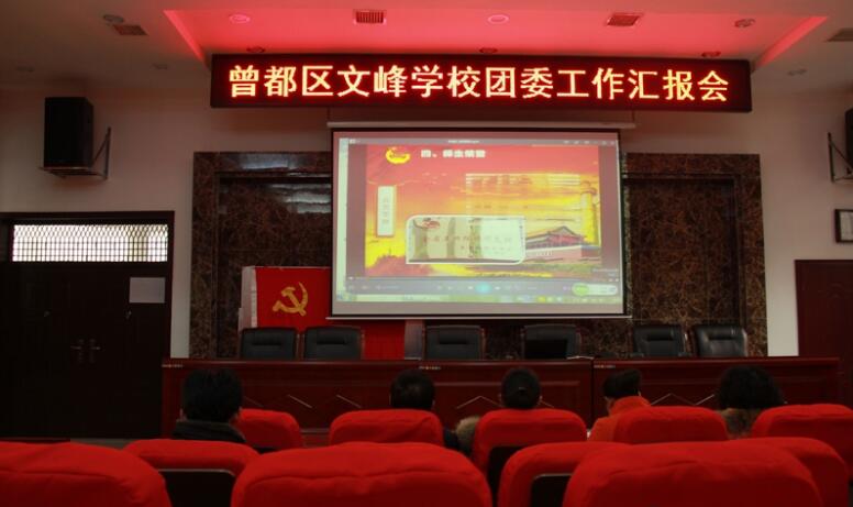 12月14日上午,团市委书记黄荆、副书记佘艳娥、市教育局副主任督学李东升、团市委组宣部部长张志宇、市教育局团委书记李伶俐一行5位领导来到曾都区文峰学校开展中学共青团改革专项调研,并指导该校共青团工作。文峰学校副书记、副校长李国勇、德育副校长王力和团委书记祁攀登参加了此次调研座谈会。