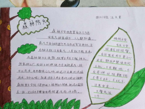 “活动的主要目的,旨在从小培养孩子们对大自然和森林的敬畏,并让人们在感受童真童趣的同时,学习森林防火知识,增强森林防火意识。”何家小学校长金彦俊介绍,手抄报从设计到宣传的完成,是由社会到学校,老师到学生,学生到家长,家长再到社会的一个宣传过程。