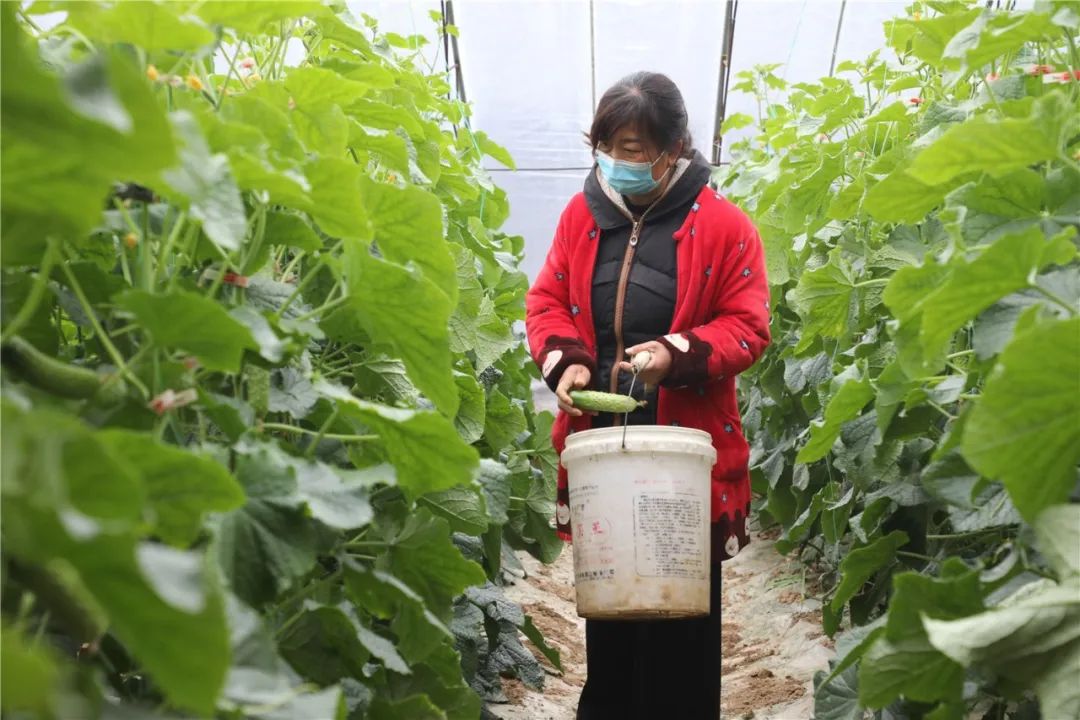 为了确保疫情防控和生产两手抓,小河沟村党支部书记张和平和蔬菜基地负责人王丛,组织动员基地附近的非“四类”人员,在每天接受体温检测后,可以佩戴口罩上岗,一人负责一个大棚的蔬菜采摘、装箱、打包。