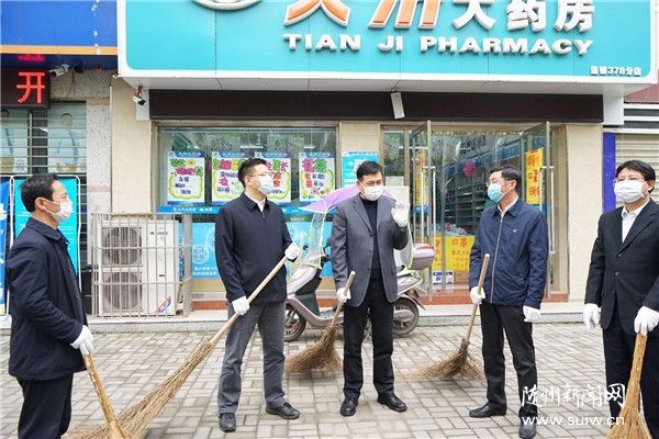 市领导一行来到汉东路东段,戴上手套,拿起扫帚和撮箕,沿人行道清扫路面的垃圾。清扫过程中,市领导与临街商户交流,嘱咐大家做好“门前三包”,维护好各自门前的环境卫生。看到人行道上部分路面破损严重,陈瑞峰指出,在新建改建道路中,要加强规划引领,统筹考虑排水、停车、绿化等,强化城市功能,提升城市品位。