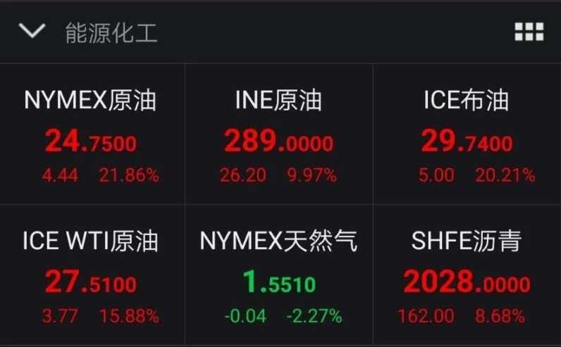 4月2日,国际原油期货价格出现暴涨,美国WTI原油期货盘中最高涨超30%,布伦特原油期货盘中最高涨超46%。截至收盘,美国WTI 原油期货价格涨幅24.67%,报25.32美元/桶;布伦特原油期货涨幅21.02%,报29.94美元/桶,均为史上最大单日涨幅。