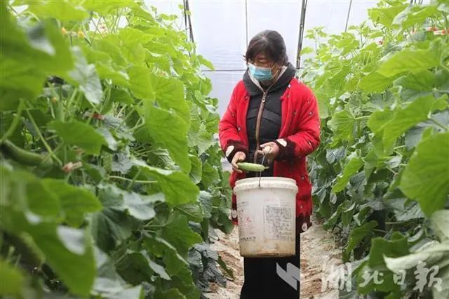 第八代大棚垒的土墙厚,增加保温棉,保温保湿效果好,黄瓜、茄子和大白菜长势旺盛。村委会组织身体健康的村民,每天接受体温检测后上岗,一人一棚采摘,确保生产、防疫两不误。