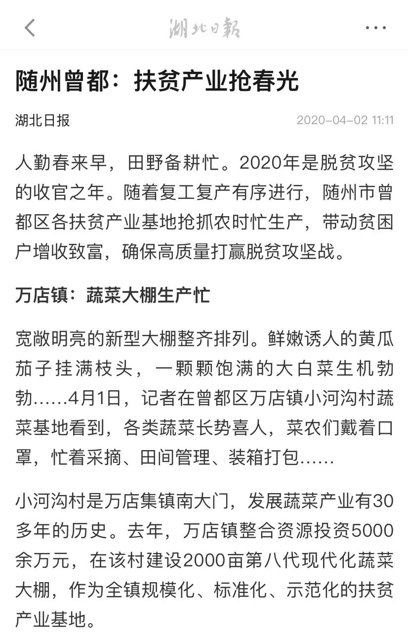 人勤春来早,田野备耕忙。2020年是脱贫攻坚的收官之年。随着复工复产有序进行,随州市曾都区各扶贫产业基地抢抓农时忙生产,带动贫困户增收致富,确保高质量打赢脱贫攻坚战。