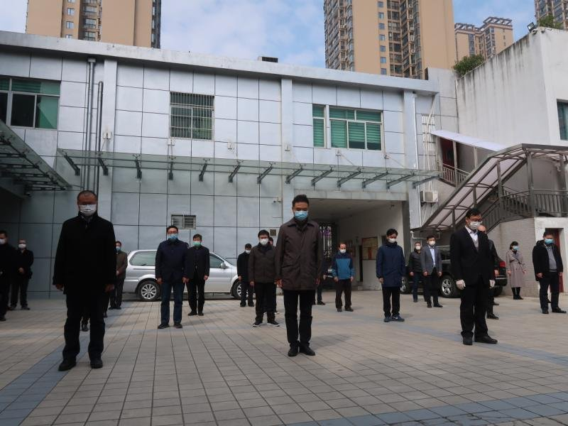 4月4日上午10点,工商银行湖北随州分行员工代表,在机关大院里深切悼念抗击新冠肺炎疫情牺牲烈士和逝世同胞。