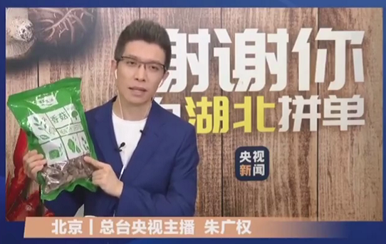 “段子手”朱广权在直播香菇时,并未像介绍其他加工过的产品那样使用大量段子与金句,而是用质朴的语言介绍到:“我觉得这个香菇最代表今天我们为湖北下单的初衷。因为疫情的影响,香菇的销量受到了很大的影响,我们这会儿买农产品就是支持我们的湖北、支持农业满血复活,支持他们复工复产,所以我特别诚恳地希望大家多多购买(湖北)农产品。”