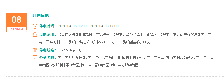 停电时间:2020-04-08 08:00—2020-04-08 17:00