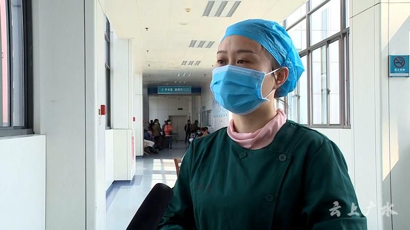 (同期声)广水市一医院手术室 护士 王莉萍:“工作期间,我所负责的是病人所有的治疗,包括输液、吸痰、雾化吸入、为生活不能自理的患者翻身、拍背、喂饭喂药,协助床上大小便。”