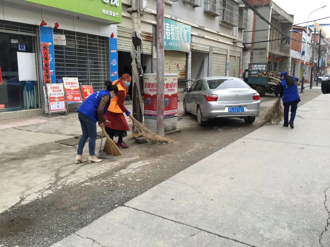 4月11日,何店镇王家河居委会巾帼帮帮团20余名志愿者来到镇区街头,开展爱国卫生运动“周末卫生大扫除”志愿服务活动。