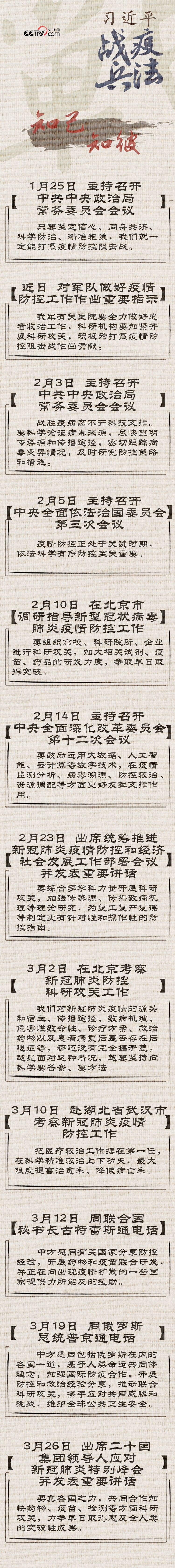 习近平从疫情防控之初就将科学防控放在了重要位置,从“坚定信心、同舟共济、科学防治、精准施策”的总要求,到“加大科研攻关力度”的反复叮嘱,再到“搞清楚病源从哪里来、向哪里去”的关切,科学防控始终是习近平战“疫”部署的一条鲜明主线。