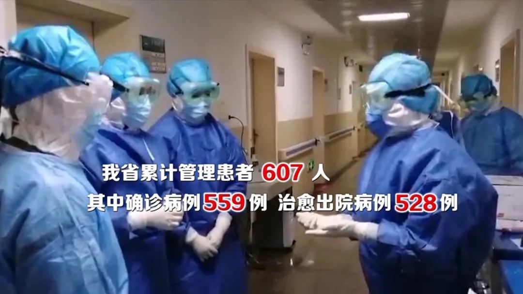 3月25日,随州市确诊病例全部“清零”,我省累计管理患者607人,其中确诊病例559例,治愈出院病例528例,参与检测各类标本20273例,排查密切接触者2300多人。圆满完成了党中央交给的光荣任务,圆满实现了省委、省政府“我们都是随州人,疫情不退,我们不退”的庄严承诺。
