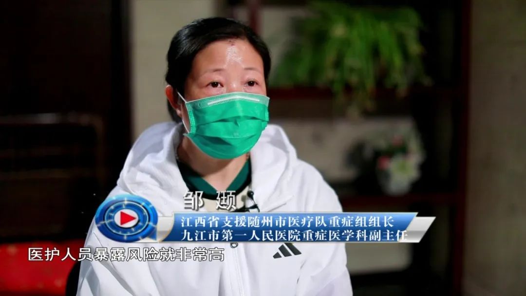 江西省支援随州市医疗队重症组组长 邹颋 :“他们的气道都是开放的,无论是给病人做口腔护理、吸痰,还是给病人做一些呼吸的治疗,医护人员暴露的风险就非常高。你再困难,都不能跟病人的病情去比较,他们是挣扎在生死线上,而你可以帮到他更多。”