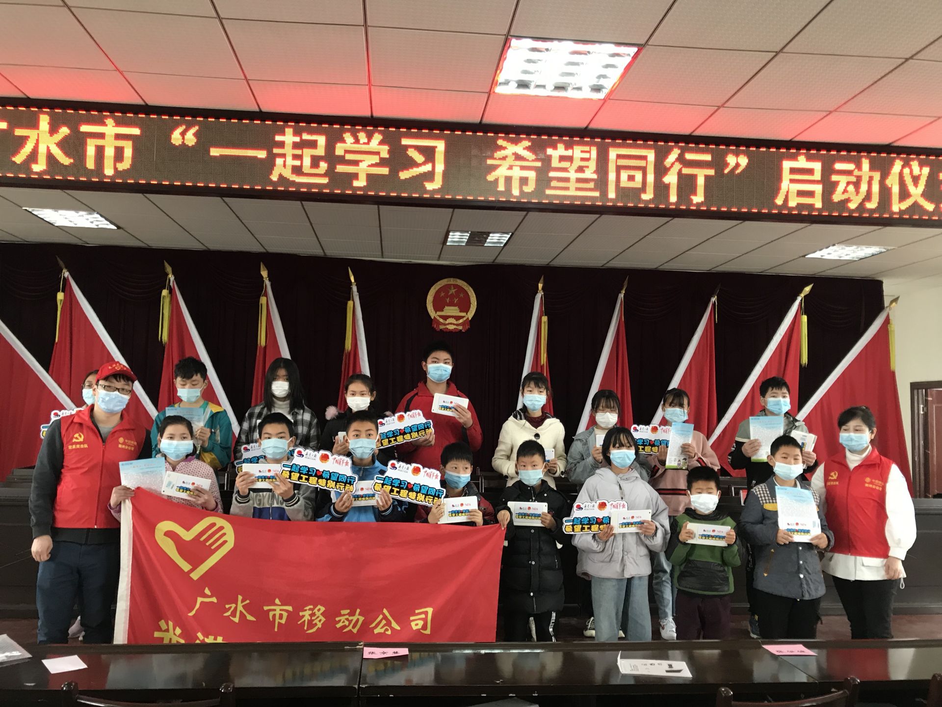 面对突如其来的新冠肺炎疫情,广水市各中小学均延迟开学,居家开启“空中课堂”网络学习模式。然而,对于农村偏远地区贫困家庭的学生来说,流畅的网速、智能手机、电脑等学习硬件都是奢望。为畅通疫情期间贫困学生线上学习渠道,4月21日上午,广水移动团支部联合广水市共青团委在关庙镇开展“一起学习、希望同行”捐赠平台电脑助力贫困学子启动仪式,为建档立卡贫困学生提供在线教育“设备+流量+课程”等公益服务,及时地将社会各界的温暖和关怀送到贫困孩子手中,尽可能地降低疫情对他们学业的影响。