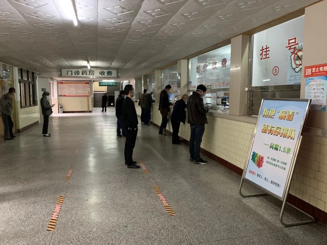 走进门诊大楼,一排排自助挂号机映入眼帘,患者在工作人员指引下,凭身份证、医保卡等有效证件实名取号。在另一旁的人工挂号处,患者间隔 1.5米排队挂号,挂号成功后凭挂号单依次进入候诊区等候就诊,就诊过程严格执行“一人一诊一室”的原则,为患者提供安全的就医环境。