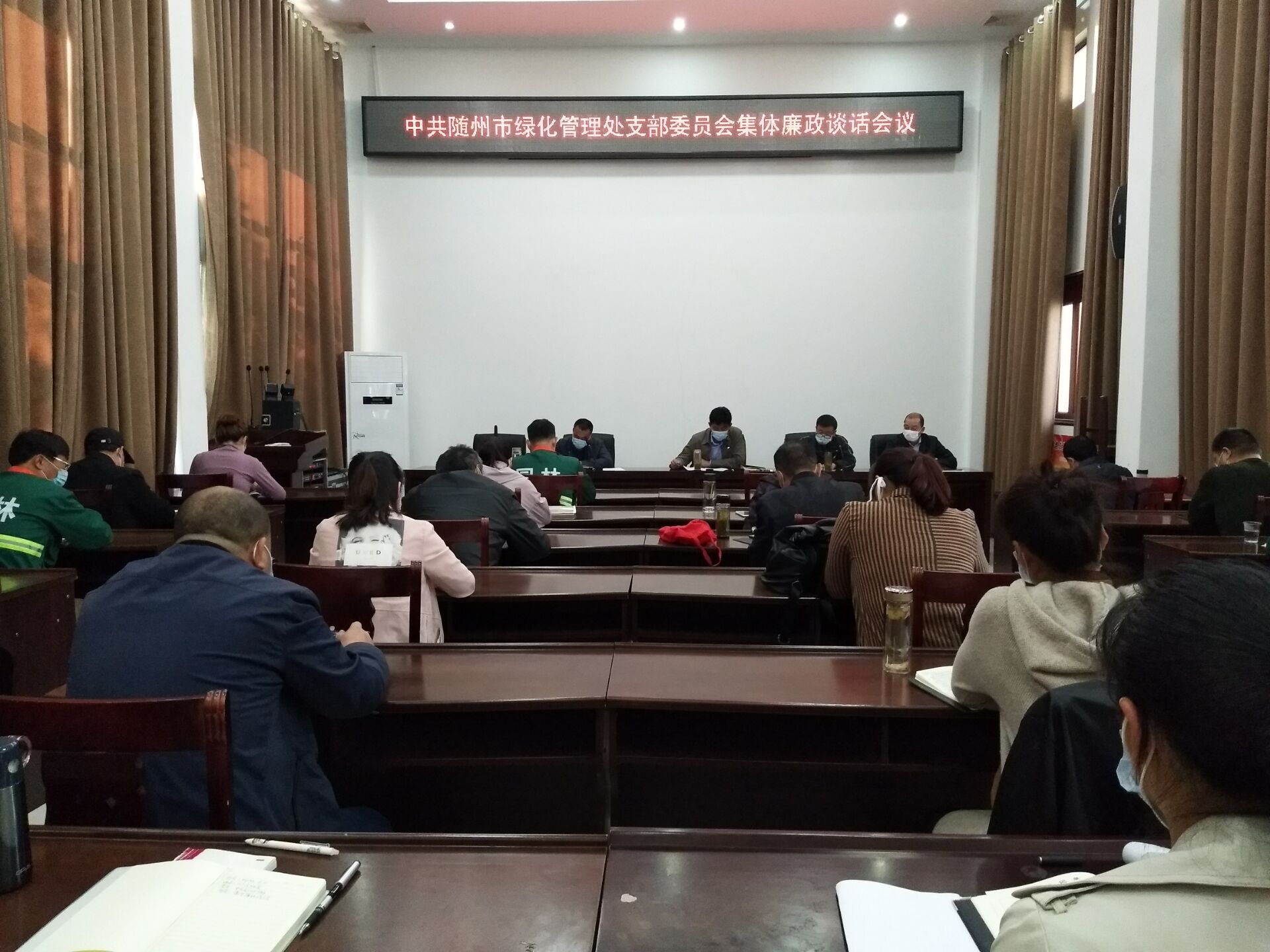 为进一步推进党风廉政建设,敲响干部廉洁履职警钟,结合中共随州市城市管理执法委员会直属机关委员会4月份党建工作提示,4月29日上午,市绿化管理处党支部召开了集体廉政谈话会议,采取支部书记与领导班子成员、中层干部;领导班子成员就各自分管领域与相关科室负责人集体谈话的形式进行,全处27名干部参加了此次集体谈话会议。
