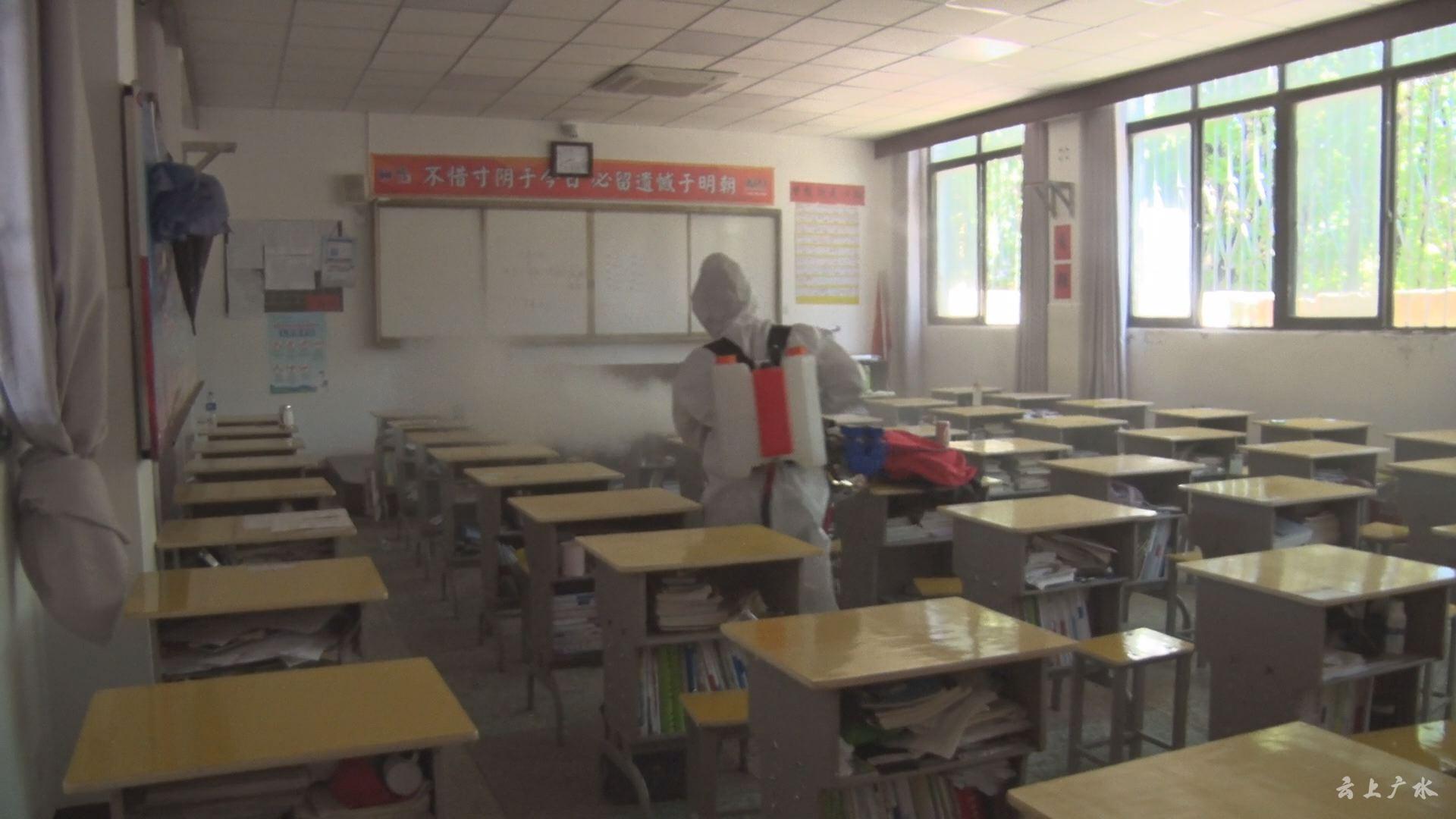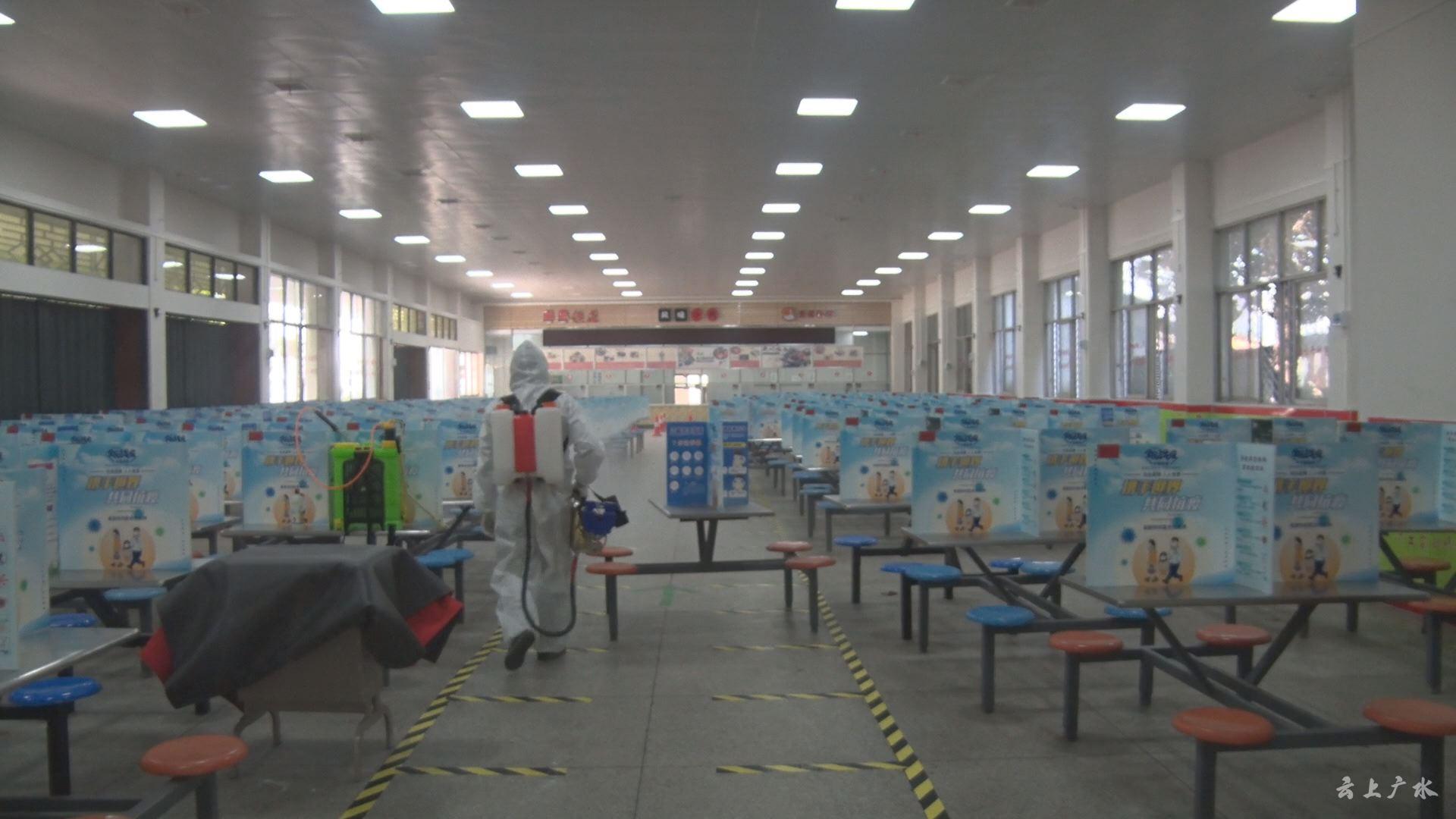 在广水市实验高中,记者看到教职工正在给教室、食堂、宿舍进行“地毯式”消杀,不遗漏每一个角落,为即将返校的高三学子筑牢安全防疫线。为了让莘莘学子有更好的学习环境,市实验高中还对教学楼进行翻新修缮,高三教室安装全新教学设备,确保复学复课平稳有序。