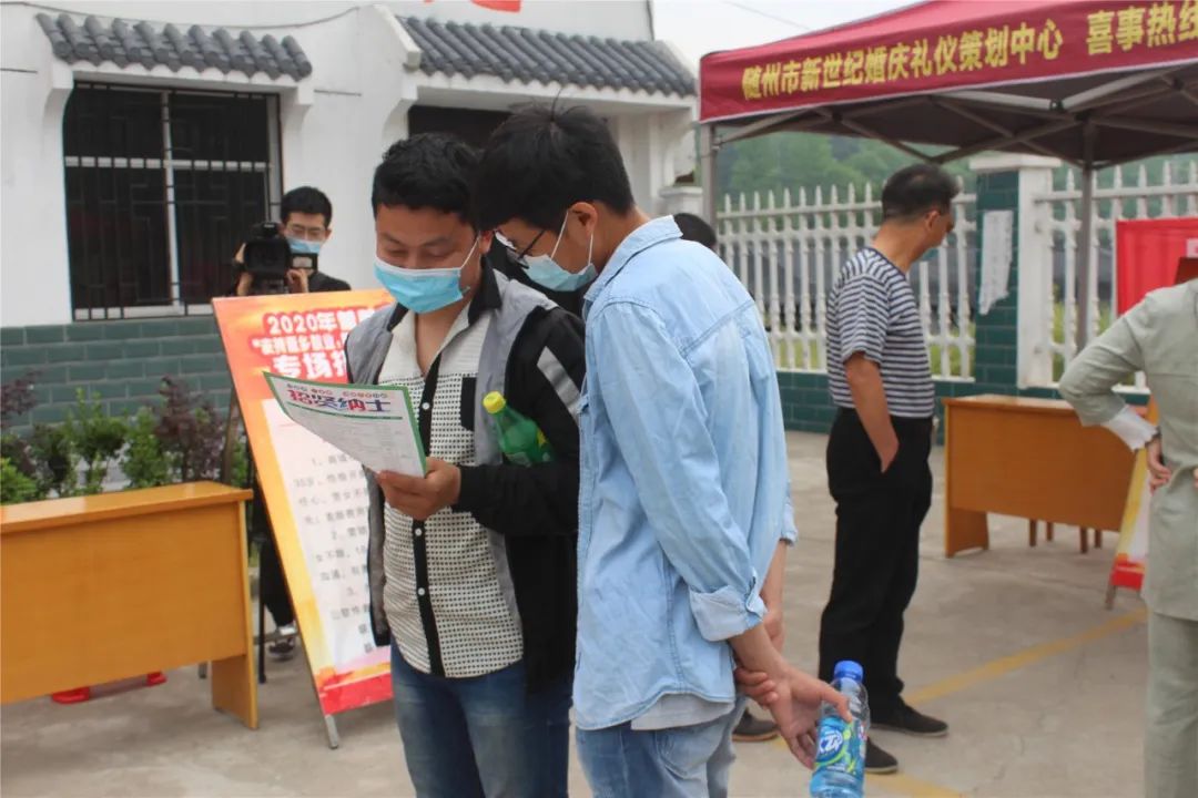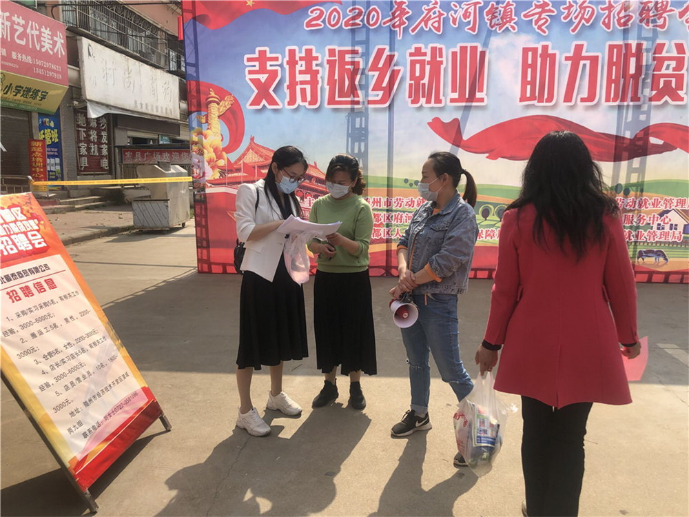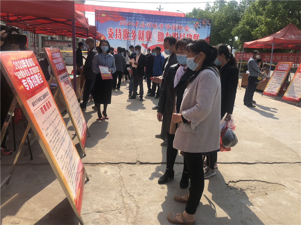 4月29日上午,由随州市劳动就业管理局、曾都区人社局、府河镇人民政府联合举办的“支持返乡就业 助力脱贫攻坚”专场招聘会在府河镇举行。
