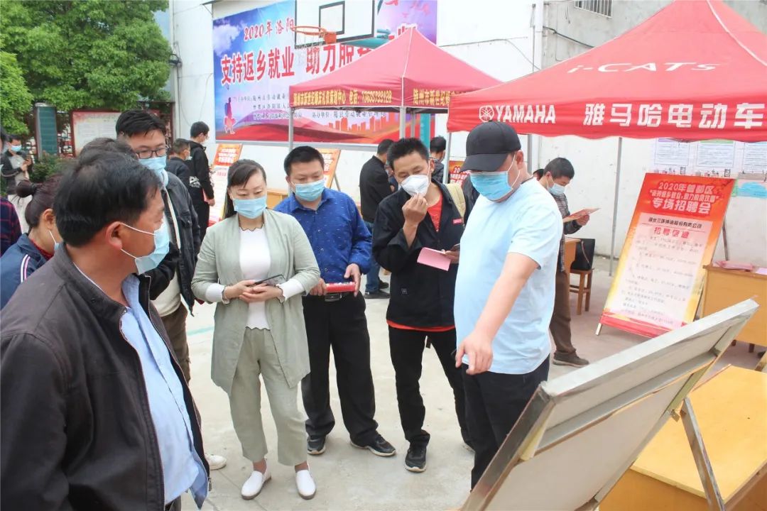 4月30日上午,由随州市劳动就业管理局、曾都区人社局、洛阳镇人民政府联合举办的“支持返乡就业 助力脱贫攻坚”专场招聘会活动在洛阳镇九口堰村举行。