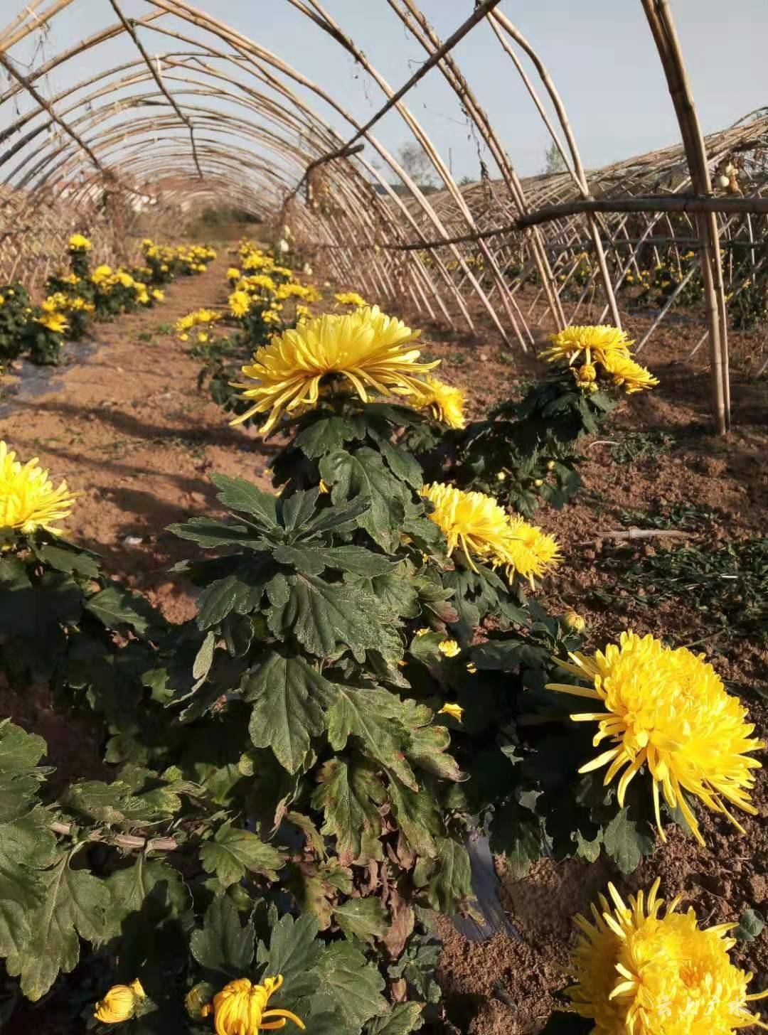2018年,叶国安在关店村发动6个贫困户试种了3亩地的金丝皇菊,经过精心培育、采摘、烘干,喜获丰收,除去人工和农资费用,每亩纯收入4000多元,让贫困户们看到了希望。2019年春天,叶国安又把金丝皇菊的产业进一步推广扩大,现在关店村的好多贫困户也都种上了金丝皇菊,他们统一种植、统一加工、统一包装、统一销售。叶国安还与金悦公司联系,发展订单农业,种植红薯510亩,亩均纯收入近5000元,带动18个贫困户顺利脱贫。