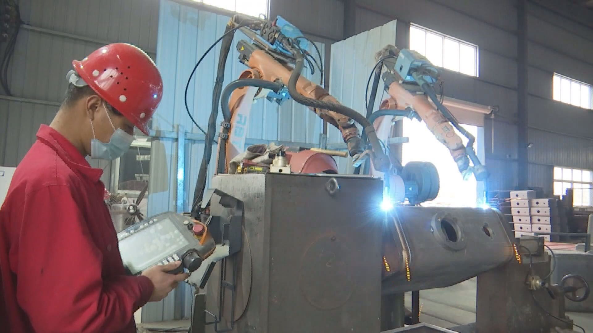 同期声:齐星车身公司机器焊接车间主任 程林 因为开年以来这个车间本来还在建设中,赶到我们这个复工的时候,公司应对目前的这个情况,投入大量的人力和物力。采取日夜班突击,对我们这个车间进行改造。目前这个机器人车间发挥的作用,第1个减员增效,采取机器换人,目前在我们这个产能提升当中起到了非常大的作用。