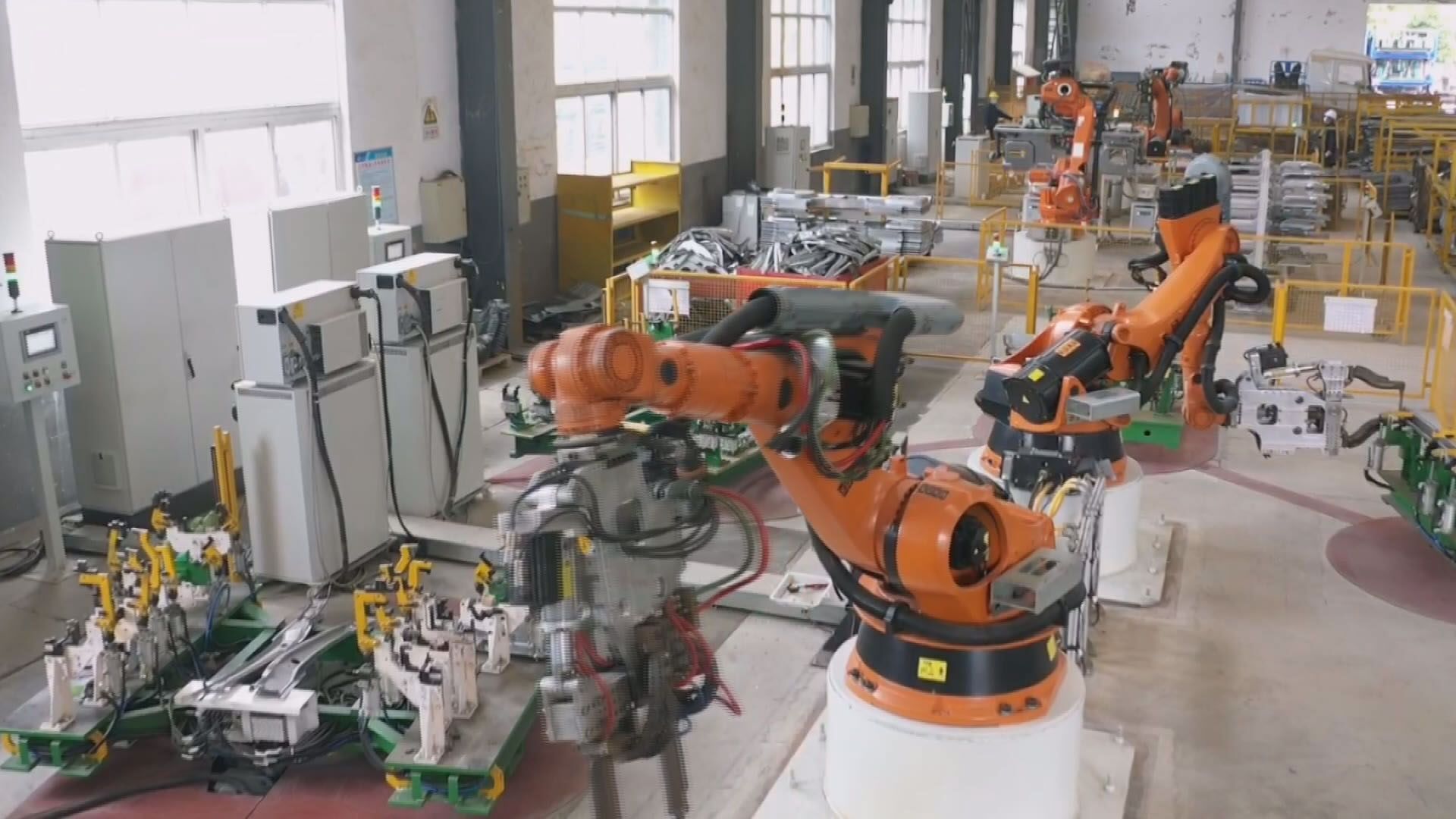 同期声:齐星车身股份有限公司总经理 李汉培 我们举一个具体的例子,咱们这个产品是我们汽车车身的一个前围内板,过去是人工作业的时候,两个人抬 一个人操作设备 ,需要三个人来操作这个产品才能实现。这个产品的生产,那么现在我们通过改造之后,基本上取代了人员,全部都是机械手 从装料到生产到下料整个过程的人员,也就是说我原来三个人要做的事,现在只需要不到一个人辅助上料就行了。我们的产能至少提高了三倍,这就是目前我们从机器换人改造获得的效果。