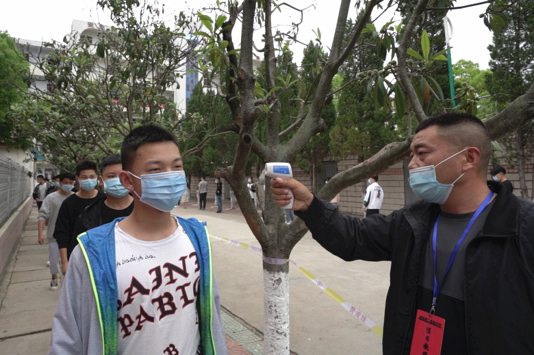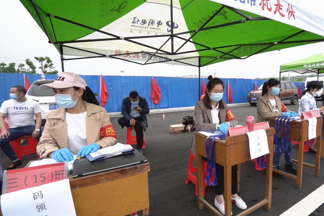 “同学们请到这边来,把家长签字确定的健康情况检测表交给我,测量体温并登记。”“大家请保持一米以上的距离,戴好口罩过来消毒。”5月6日上午九时,随县一中通过“点对点”专车分批错时将三里岗镇复学返校的高三学生安全有序从家门口接到学校。