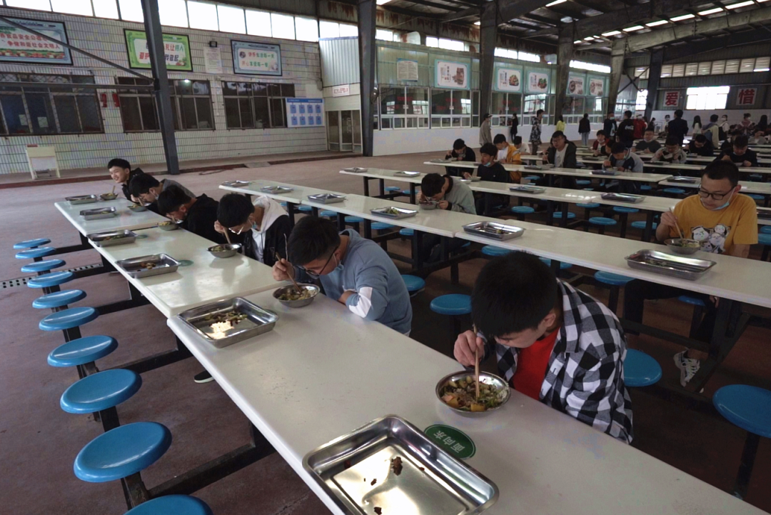 在学校食堂,学校采取错峰就餐方式,要求学生们必须戴好口罩,在洗手池间隔一米排队,按照“七步洗手法”用洗手液清洗双手进入食堂。食堂门前,当值老师安排学生间隔一米排队测量体温,体温正常者有序从正门进入,确保不扎堆、不聚集。食堂内,或是餐桌上设置挡板隔绝,或是餐桌之间保持1米安全间距,倡导学生有序就餐。