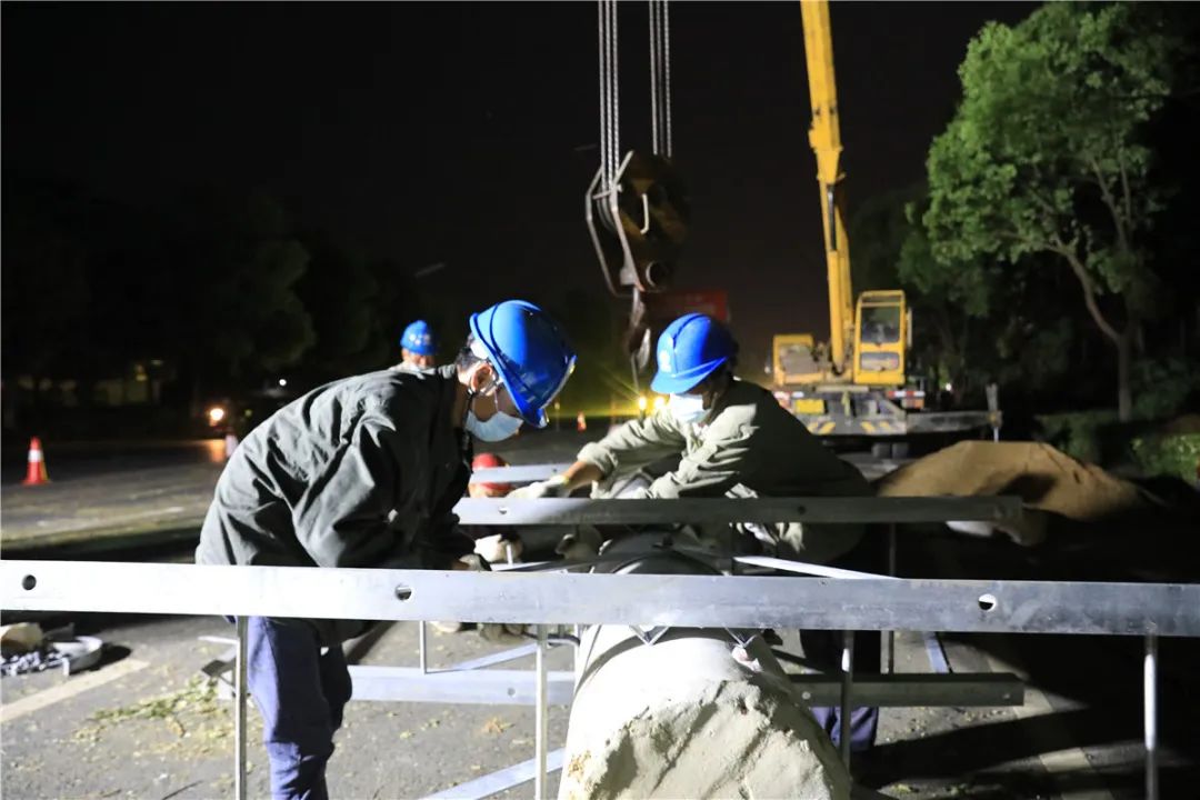 5日凌晨2:20分,高空作业车、吊车、挖机、材料运输车全部就位。