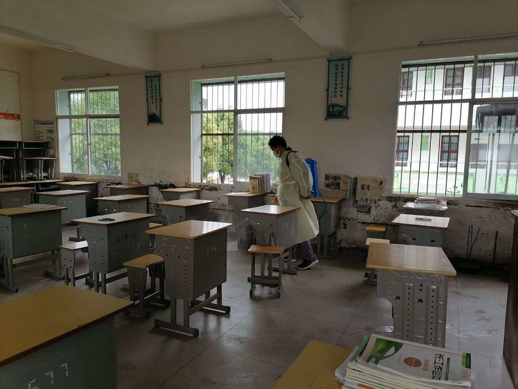 学校每天都有专人对教室、寝室、食堂等学生活动场所进行杀毒,同学们可以放心地在学校学习生活。