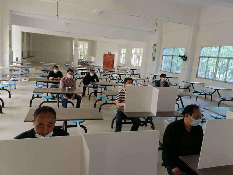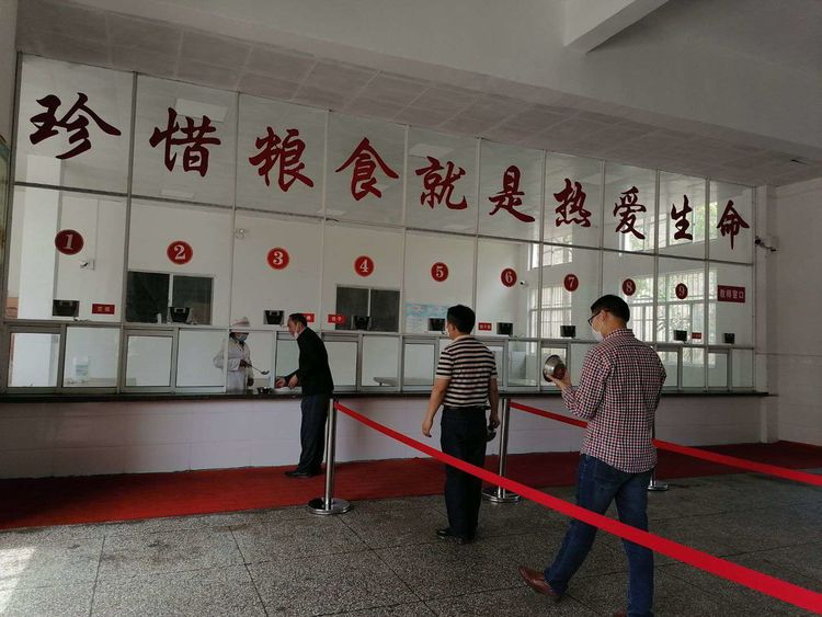 1、就餐时在食堂门口间隔一米排队等候工作人员测温消毒后进入食堂。